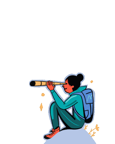 An animated sticker from Basecamp Basecampshop featuring a person with a telescope, highlighting 'Your Spot In The Mountain'.
