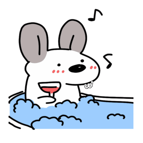 a cartoon drawing of a dog in a bathtub holding a wine glass