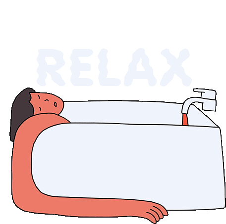 An animated sticker by Ana Curbelo showing a person enjoying a relaxing bath, with the word 'RELAX' appearing above.