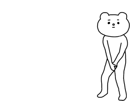 Betakkuma, the popular bear character, stands awkwardly with hands clasped, indicating an urgent need for a bathroom break.