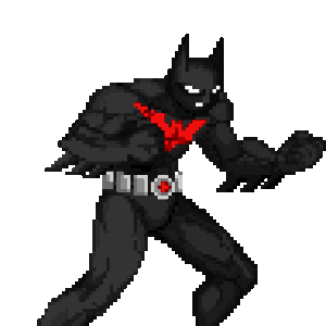 Batman Beyond in pixel art style, ready for action. Animated sticker featuring the futuristic Dark Knight.