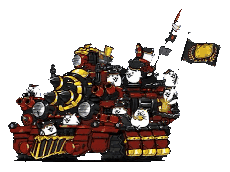 The Mighty Cat-a-pult from Battle Cats, a formidable tank-like unit, is animated with several cute cats on board.