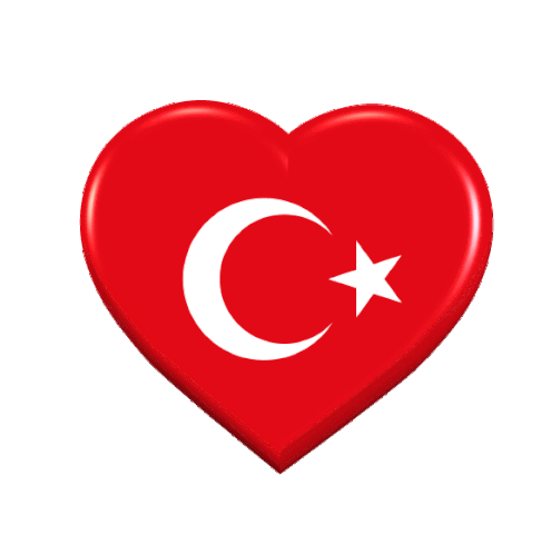 A vibrant 3D animated heart featuring the Turkish flag, with its iconic crescent moon and star, gently rotating.