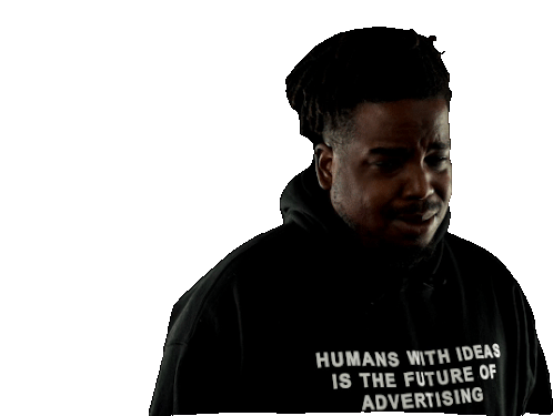 Nkosi from Bdh Collective, wearing a black hoodie that proudly states 'HUMANS WITH IDEAS IS THE FUTURE OF ADVERTISING'.