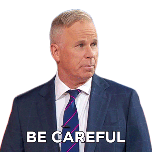 Gerry Dee, the host of Family Feud Canada, delivers a stern 'Be Careful' message, looking directly at the viewer.