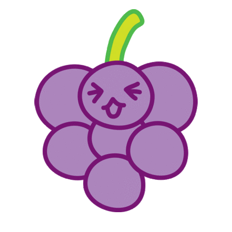 A cheerful animated sticker featuring a bunch of purple grapes, with one grape showing a beaming, laughing face.