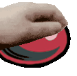 Bean Azuki sticker featuring a hand firmly pressing a vibrant red button on a matching red plate, animated with satisfying action.