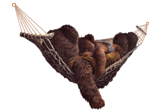 A cute animated brown bear sleeps peacefully on its back, with Zzz symbols floating, perfect for expressing tiredness or rest.