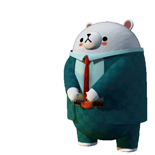 White cartoon bear in a suit and tie bows apologetically, expressing regret with 'I'm sorry' text.
