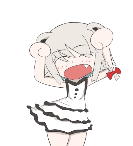 Beatani performs the energetic Caramelldansen dance with a cheerful expression, arms raised in a cute chibi style.