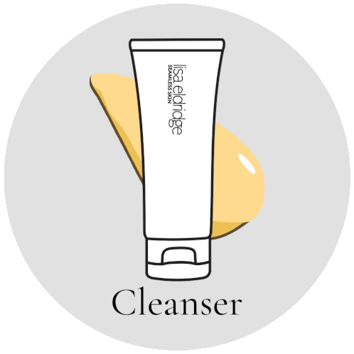 Animated sticker featuring a Lisa Eldridge Seamless Skin cleanser tube with a yellow product smear and the word 'Cleanser'.