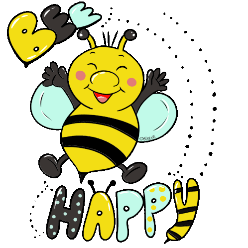 a cartoon of a bee with the words bee happy below it
