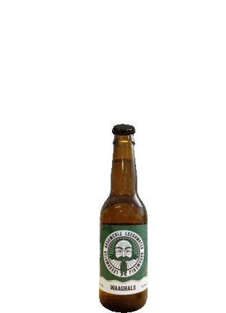 A refreshing craft beer bottle, Waaghals, being opened with its cap flying off in a dynamic animation.