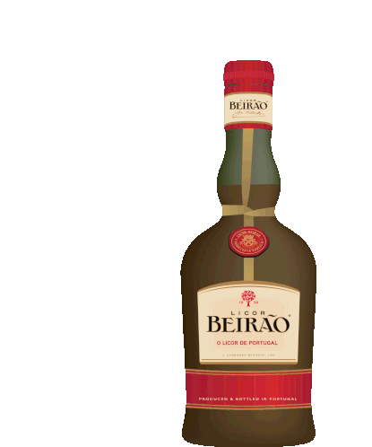 Two bottles of the Portuguese liqueur Licor Beirão, known for its herbal and sweet flavor, clinking together.