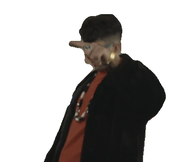Spanish rapper Bejo, wearing sunglasses and a black coat, performs a gesture from his song 'Andando Al Anden'.