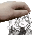 A hand places a donut on the head of the Belgium Hetalia character in a charming black and white anime drawing.