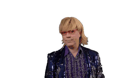 Bennie Solo, wearing a sequined jacket and red glasses, gives a firm thumbs down gesture, expressing 'No Thanks'.
