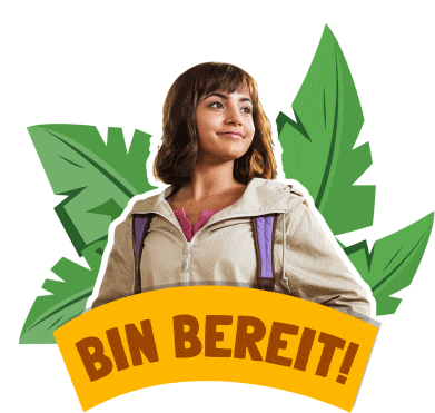 Dora (Isabela Moner) from 'Dora and the Lost City of Gold' with 'BIN BEREIT!' caption.