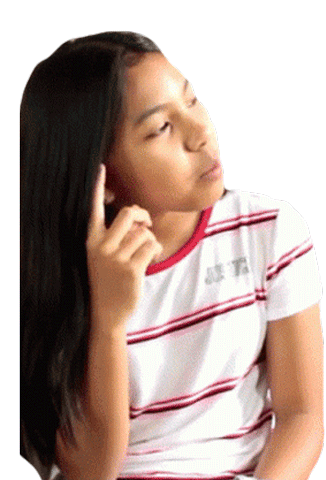 Keira looks thoughtful and puzzled, with her finger to her temple, as if deep in thought or wondering.