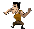 A pixel art character, Berserk Jerk, in a dynamic fighting stance, ready for action.