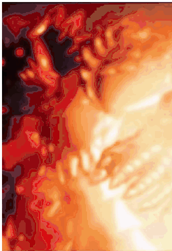 a blurred image of a person 's face with a red background