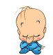 A cute baby in a blue outfit gives a flying kiss, holding a red heart. A sweet 'Besito' sticker.
