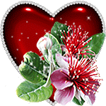 An animated red heart adorned with colorful flowers and leaves, featuring the Spanish word 'Besos' (Kisses) for a loving touch.