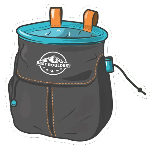 Cartoon sticker of Sasha Digiulian, a climber from Best Boulders, hanging from a rope in full gear.