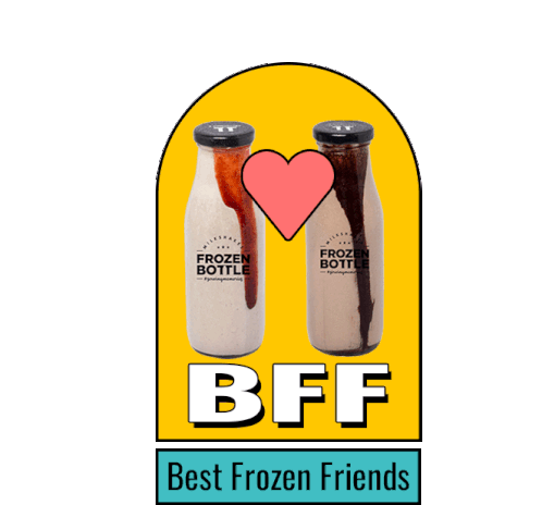 Two Frozen Bottle drinks with a heart, celebrating friendship with 'BFF Best Frozen Friends' text.