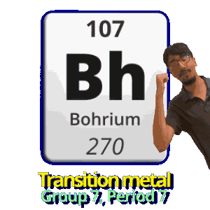 a man stands in front of a sign that says bohrium 270 on it