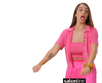 Bianca Camargo energetically dances and shakes her long, straight hair, showcasing a lively reaction for Salon Line.