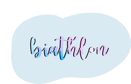 Animated sticker featuring the word 'biathlon' in a stylish, gradient-colored cursive font, representing the winter sport.