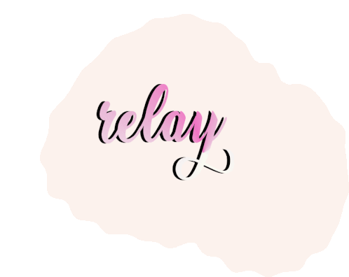Animated calligraphic text 'relay' with a pink shadow, connected to biathlon, realywomen, and sturlaegreid.