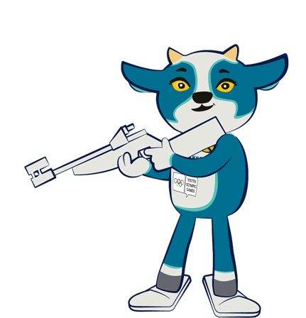 Yodli, the Lausanne 2020 Youth Olympic Games mascot, aiming a biathlon rifle, ready for action.