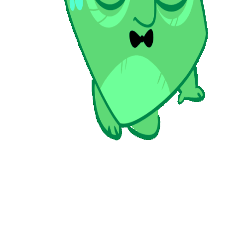 Bibipet Bibi, a cute green chameleon with a bow tie, opens its eyes with a sleepy, bored expression.