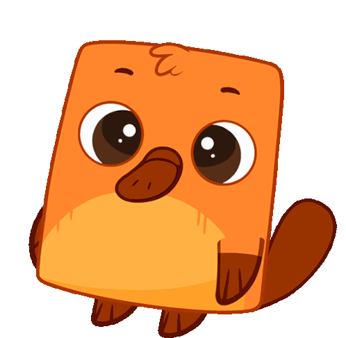 A square-shaped, orange Bibipet platypus character with an angry, grumpy expression and furrowed brows.