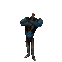 A pixelated big ghoul figure in a dark suit dances with exaggerated movements, perfect for a spooky or quirky sticker.