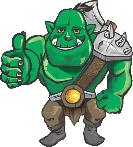 Animated Big Mek from Warhammer 40,000's Shootas, Blood & Teef, a complex orange mechanical device with glowing blue parts.