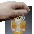 A hand holds the animated Biggie Pet pixel character, a blocky figure resembling a Minecraft character.