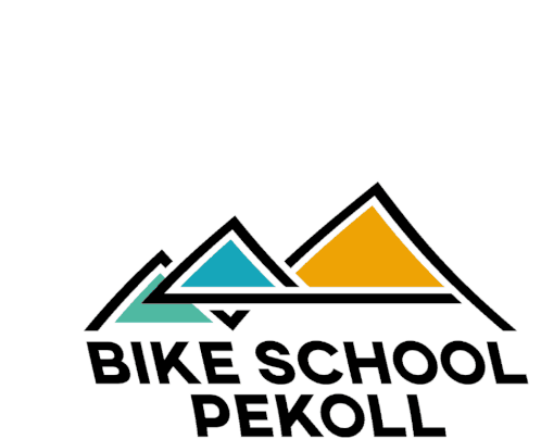 Dynamic logo for Bike School Pekoll, featuring stylized mountains, representing mountain biking, coaching, and progress.