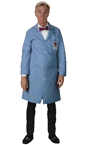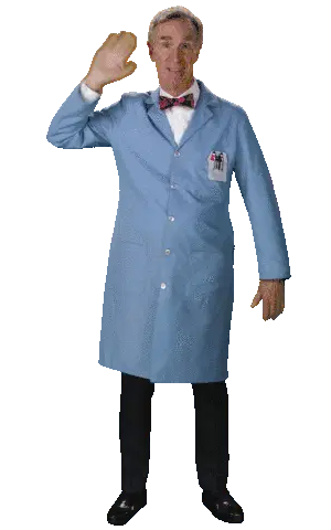A classic TV on a rolling cart displaying 'Bill Nye The Science Guy', featuring Bill Nye's image and a VCR player.