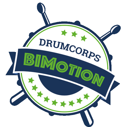 a logo for drumcorps bimotion with a drum