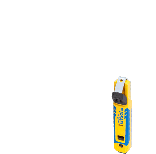 Animated sticker featuring the German phrase 'Bin Dann Mal Weg' and a Jokari cable knife.