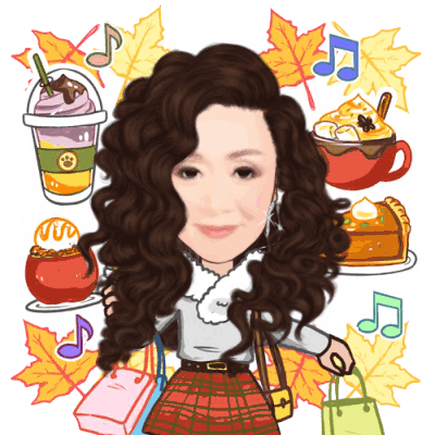 Binhminh Bongcoi and Moc enjoy autumn shopping, surrounded by fall leaves, sweet treats, and musical notes.