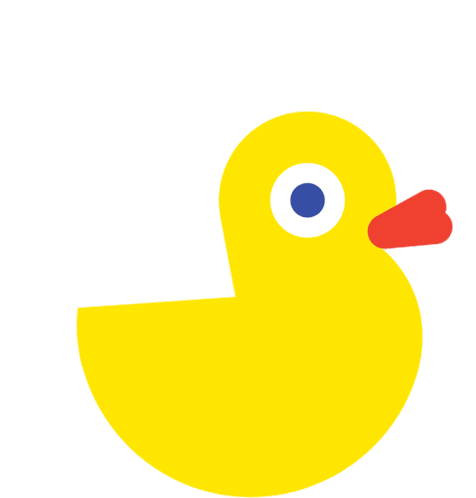 A cute yellow rubber duck with a blue eye and red beak, gently bobbing up and down as if floating.