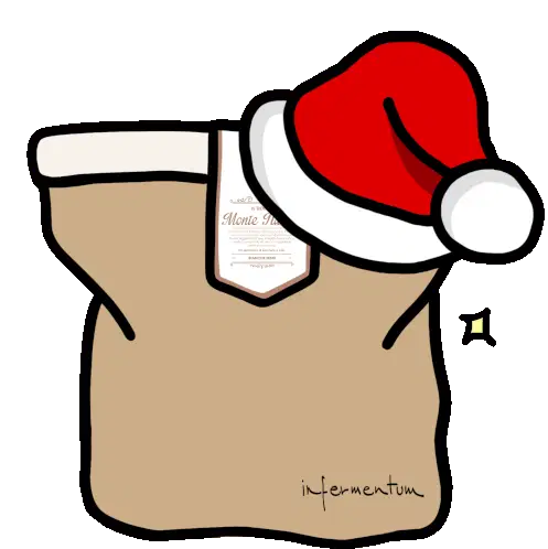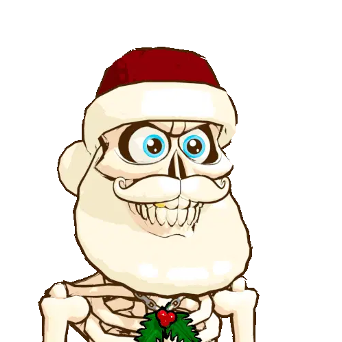 Birene's adorable Christmas donkey, wearing a Santa hat and scarf, sits on ice with skates and mittens, surrounded by snowflakes.