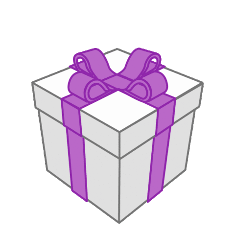 A birthday gift box with a purple ribbon opens to reveal a cute purple bear making heart gestures.