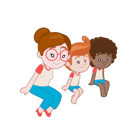 a cartoon of a woman and two children