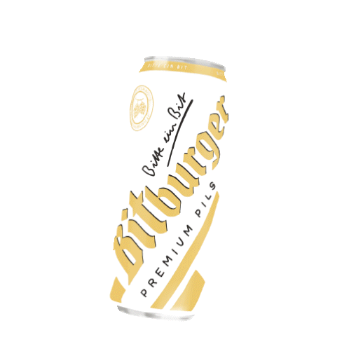 An animated Bitburger Premium Pils beer can opens with a refreshing fizz, perfect for after-work or weekend celebrations.