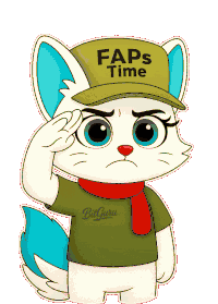 a cartoon cat wearing a green hat that says faps time